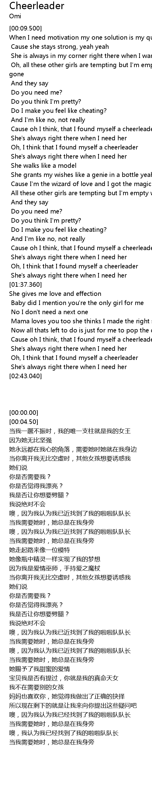 Cheerleader Lyrics