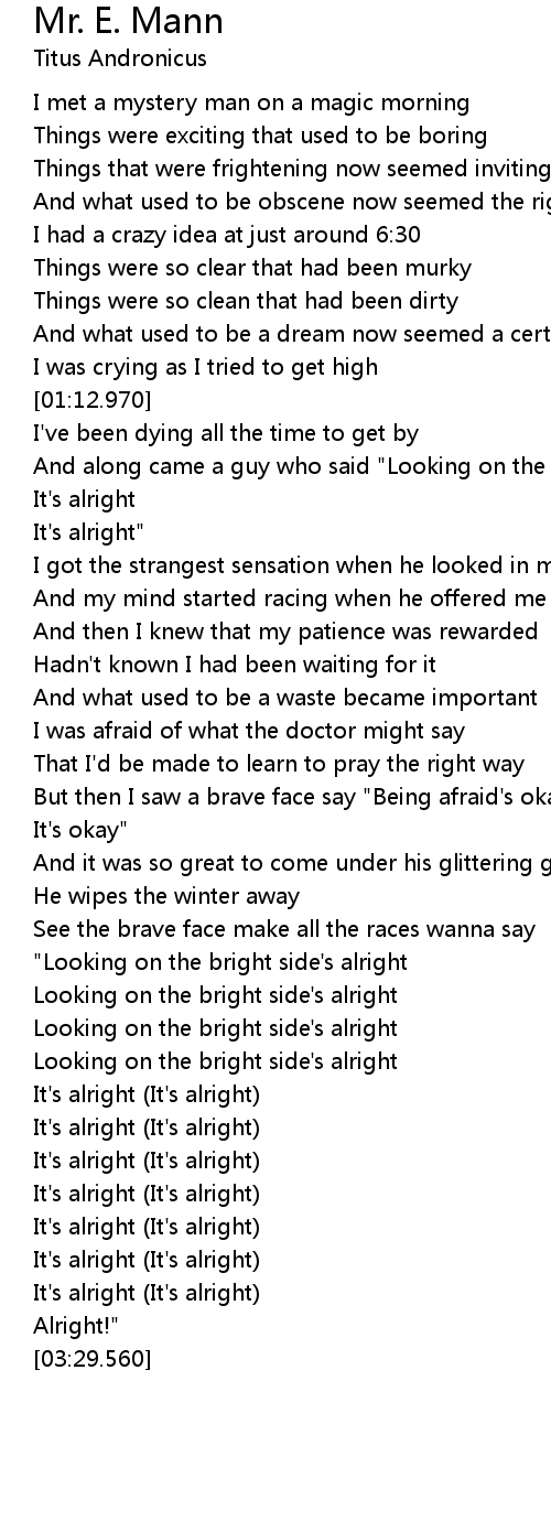"Looking on the bright side's alright |