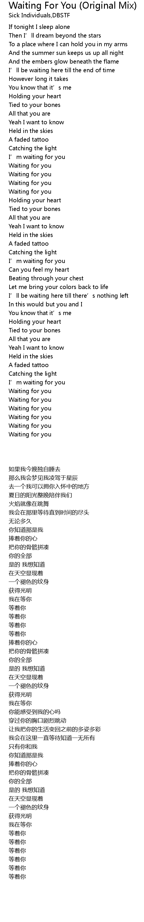| Song | Waiting For You (Original Mix) |