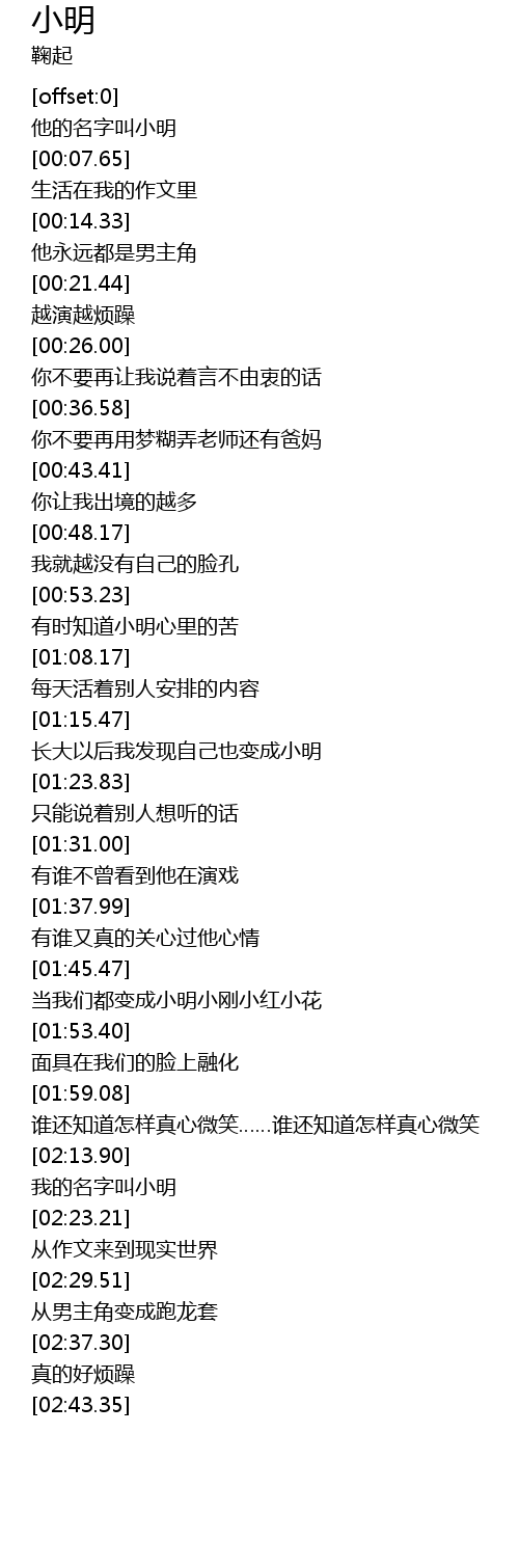 | [02:19.26] | 我的名字叫小明 |