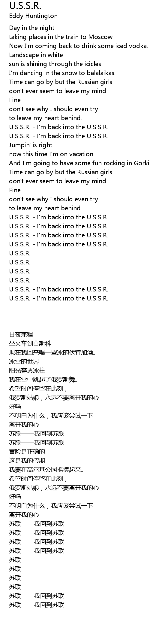 U.S.S.R. - I'm back into the U.S.S.R. |