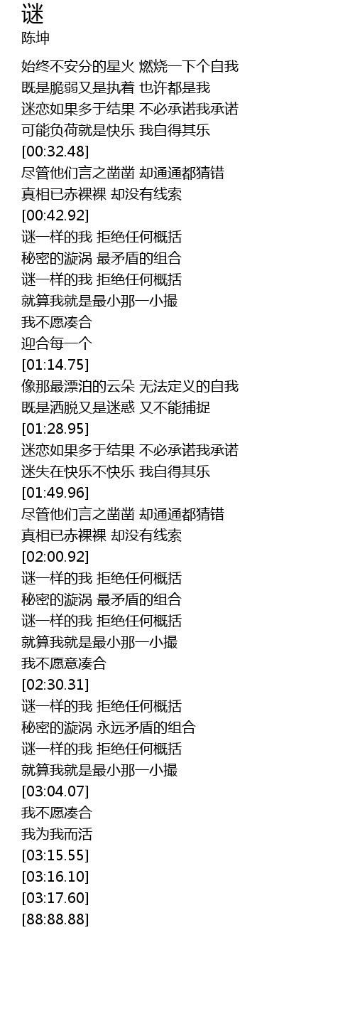 | [00:43.69] | 谜一样的我 拒绝任何概括 |