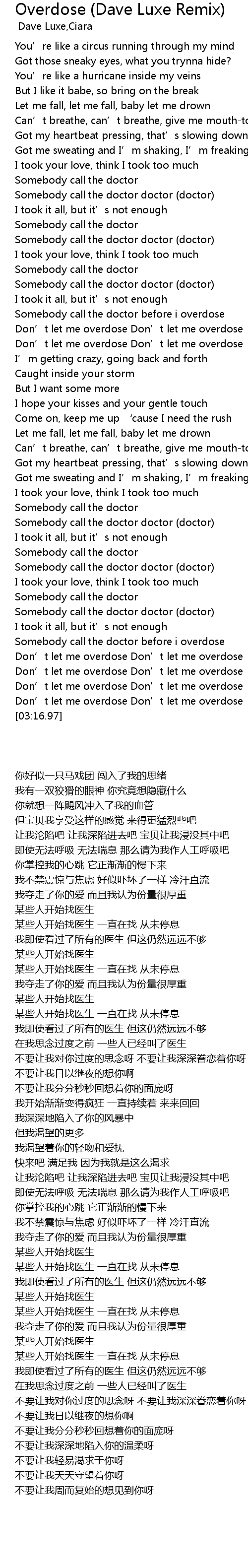 | [02:56.23] | Don' t let me overdose Don' t let me overdose |