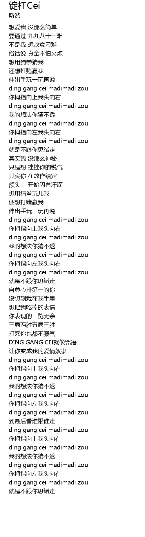 | ding gang cei madimadi zou | |