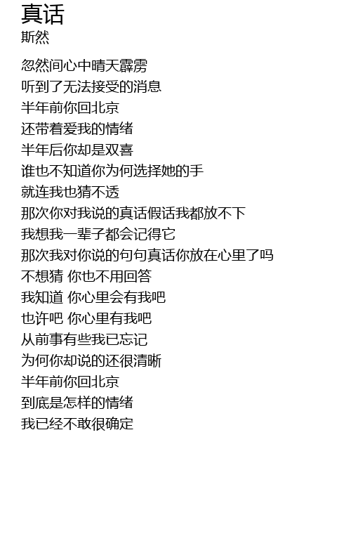 | 那次我对你说的句句真话你放在心里了吗 | |