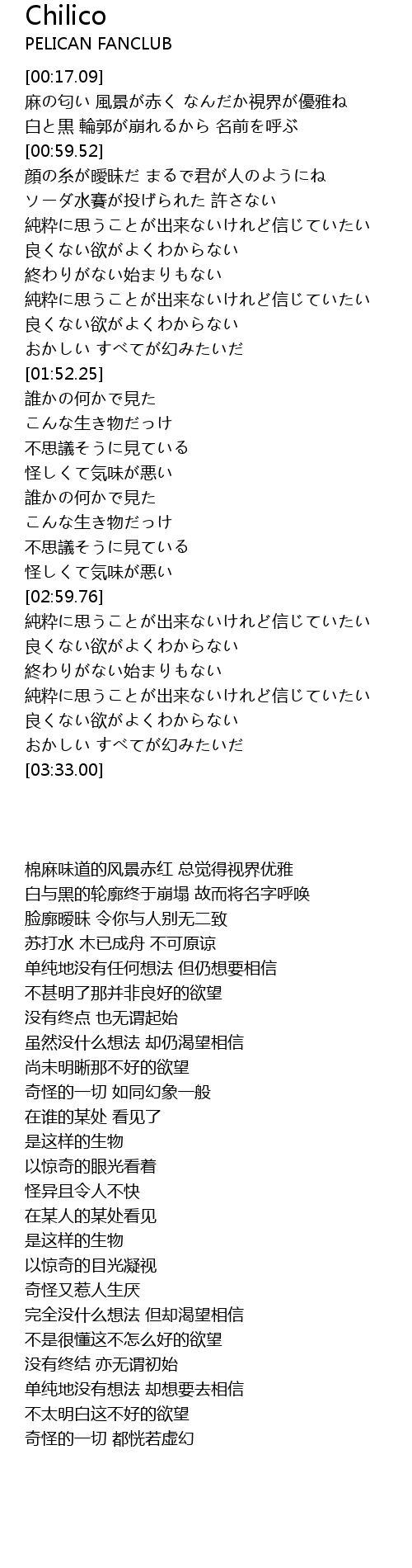 | [00:49.45] | 白と黒 輪郭が崩れるから 名前を呼ぶ |