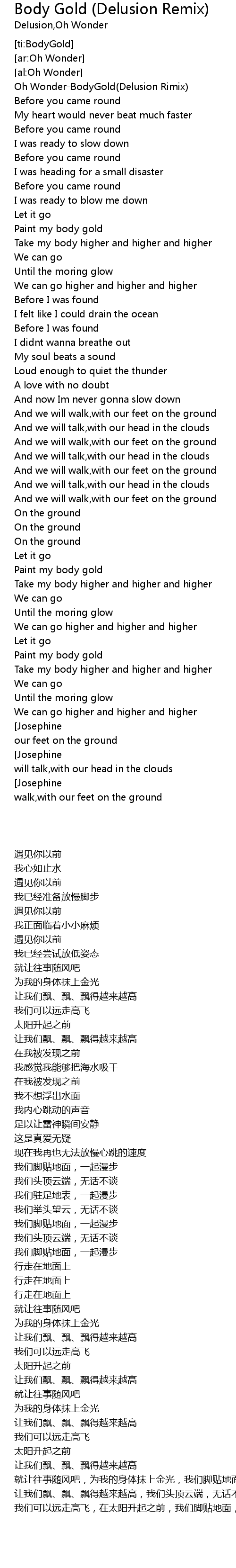 | [00:00.00] | Oh Wonder-BodyGold(Delusion Rimix) |