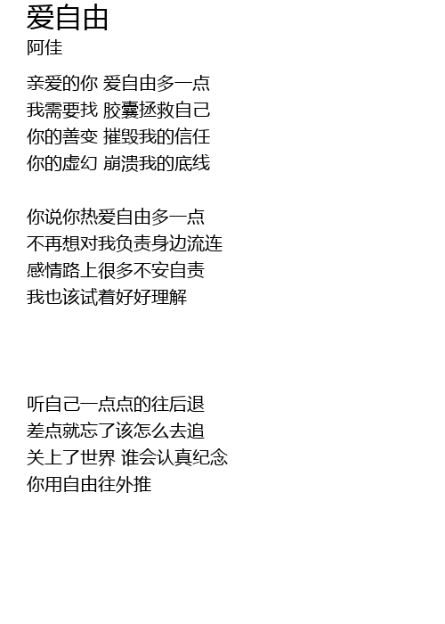 | qīn ài de nǐ ài zì yóu duō yì diǎn | |