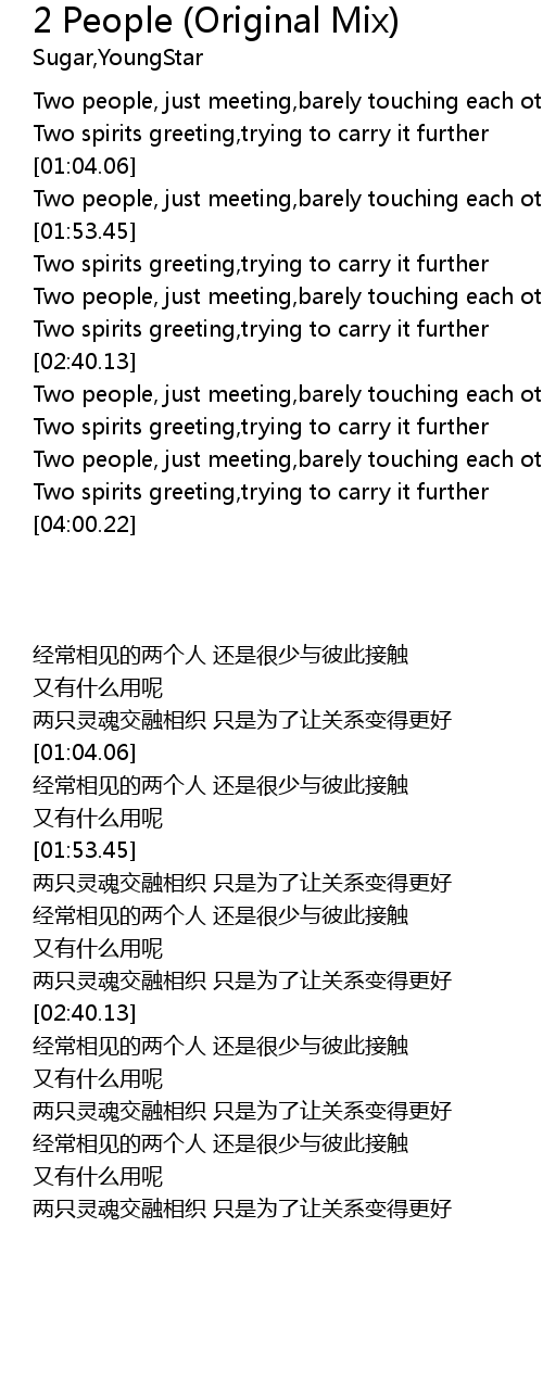 | [00:48.60] | Two people, just meeting,barely touching each other |