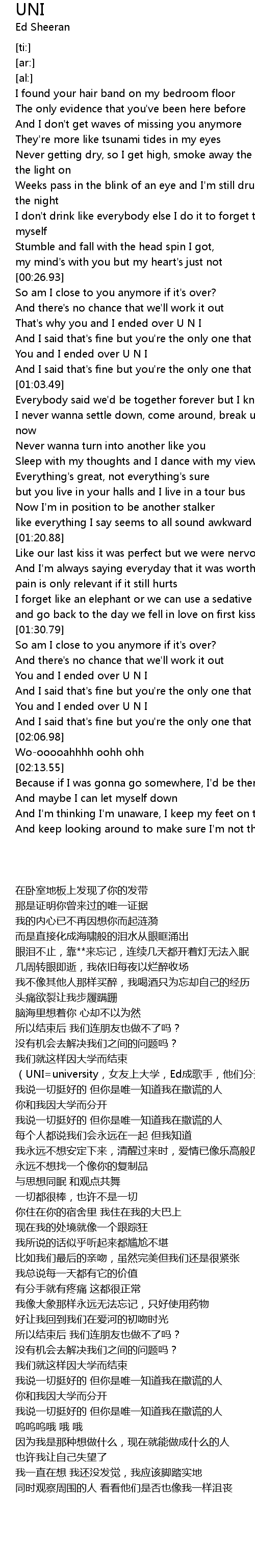 That's why you and I ended over U N I |