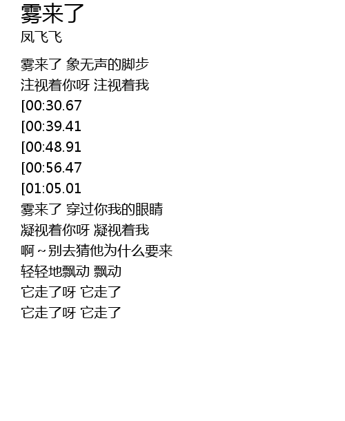 | [00:16.57] | 雾来了 象无声的脚步 |