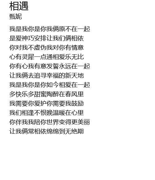| wǒ shì wǒ nǐ shì nǐ rú jīn xiāng ài zài yì qǐ | |
