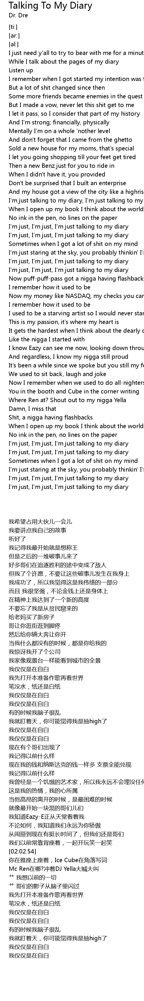 | [02:31.91] | I'm just, I'm just, I'm just talking to my diary |