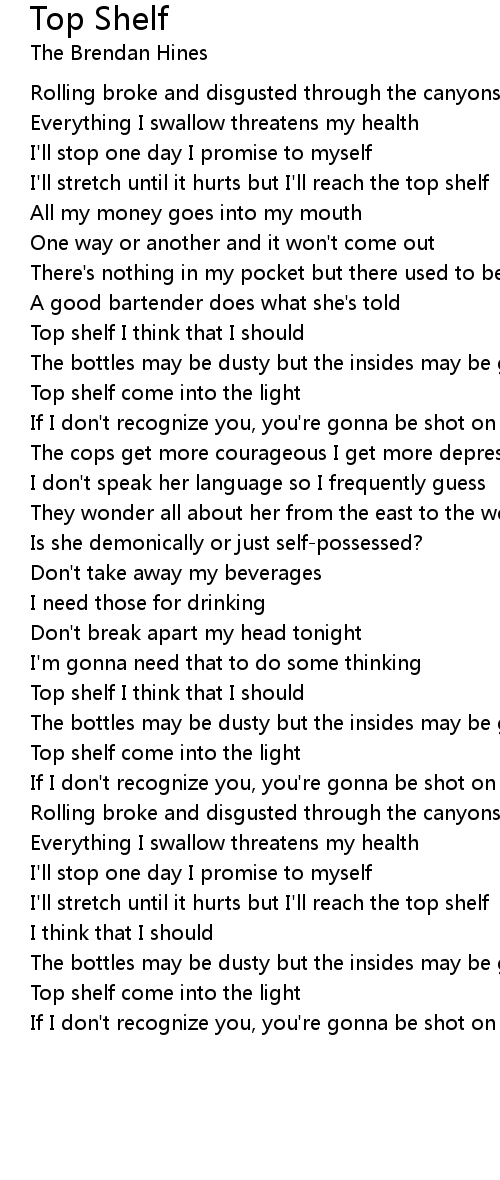 Top shelf I think that I should |
