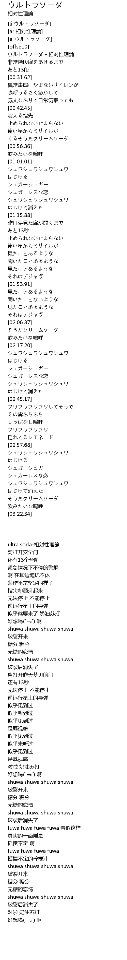 | [00:00.31] | ウルトラソーダ - 相対性理論 |