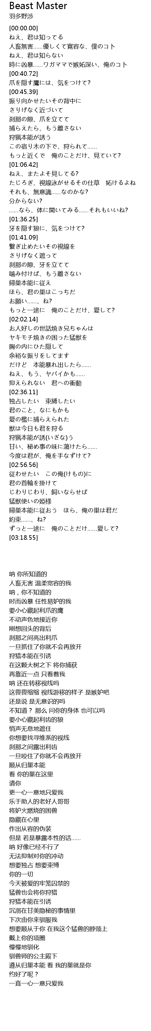 | [02:56.92] | 従わせたい この俺(けもの)に |