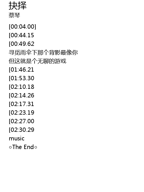 | [00:30.24] | 寻觅雨伞下那个背影最像你 |