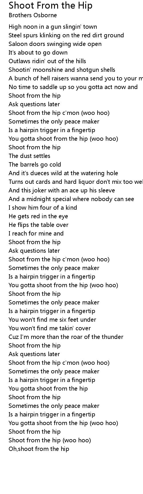 You gotta shoot from the hip (woo hoo) |