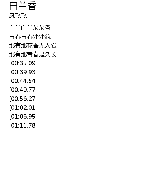 | [01:57.79][00:56.27] | 嗨嗨嗨白兰白籣朵朵香 |