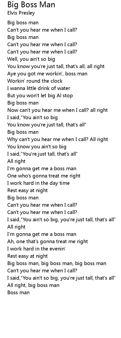 Big boss man, big boss man, big boss man |