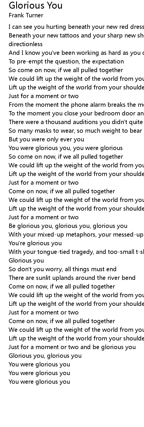 Be glorious you, glorious you, glorious you |