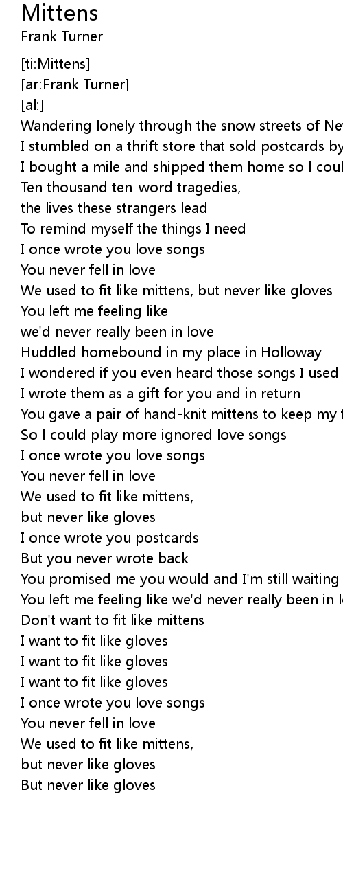 You gave a pair of hand-knit mittens to keep my fingers warm |