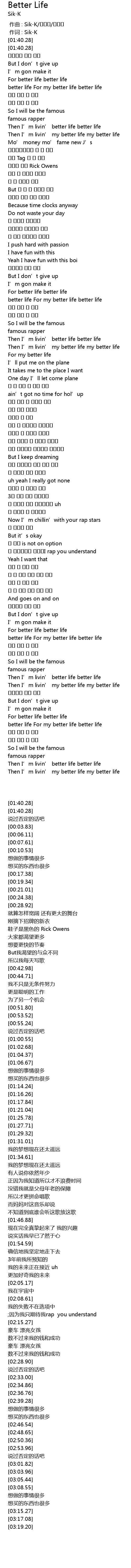 | [02:50.36] | Then I' m livin' better life better life |