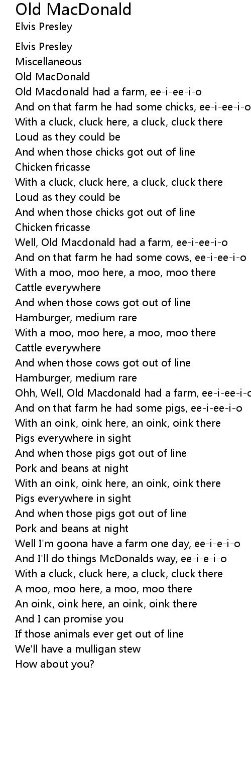 And I'll do things McDonalds way, ee-i-e-i-o |