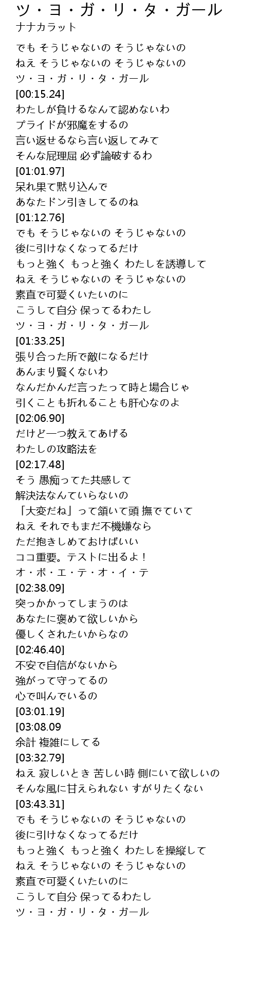 ツ・ヨ・ガ・リ・タ・ガール |
