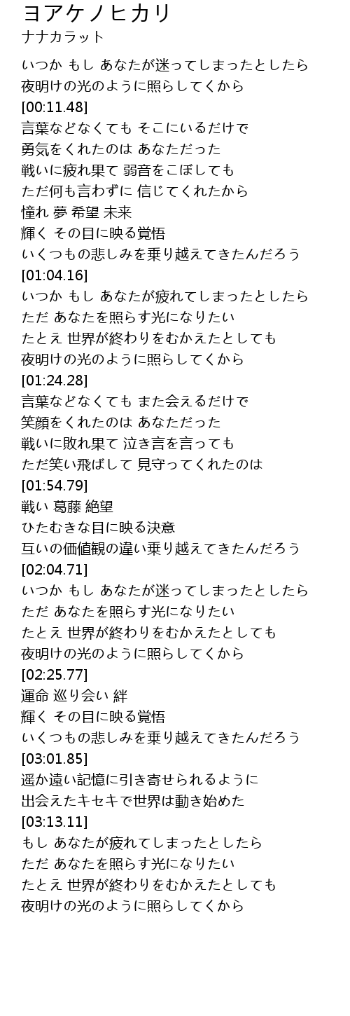 | [03:18.82] | ただ あなたを照らす光になりたい |