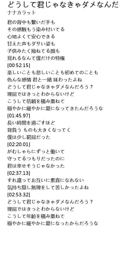| [02:54.83] | どうして君じゃなきゃダメなんだろう? |