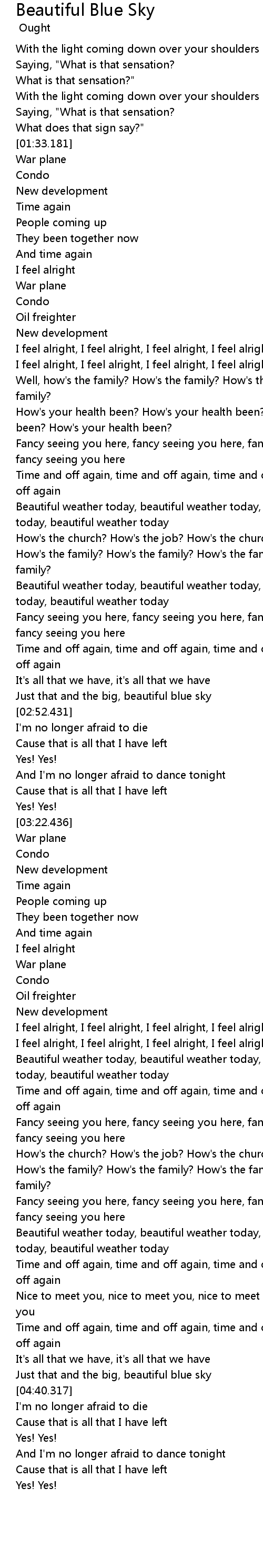 I feel alright, I feel alright, I feel alright, I feel alright |