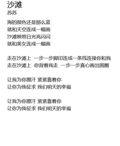 | zǒu zài shā tān shàng yī bù yī bù jiǎo yìn lián chéng yī tiáo xiàn lián jiē nǐ hé wǒ | |