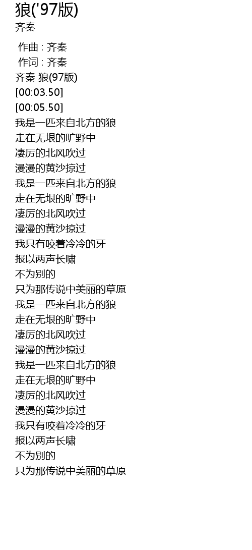 | [00:39.56] | 我是一匹来自北方的狼 |