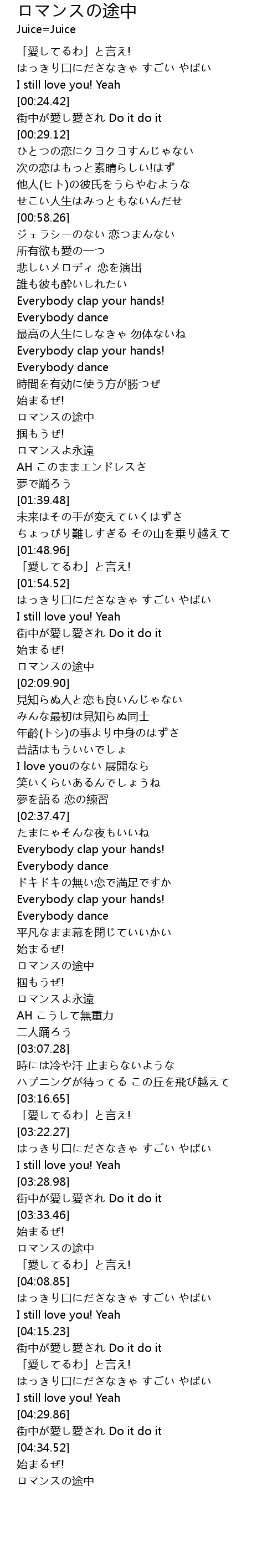 | [01:29.06] | ロマンスの途中 |