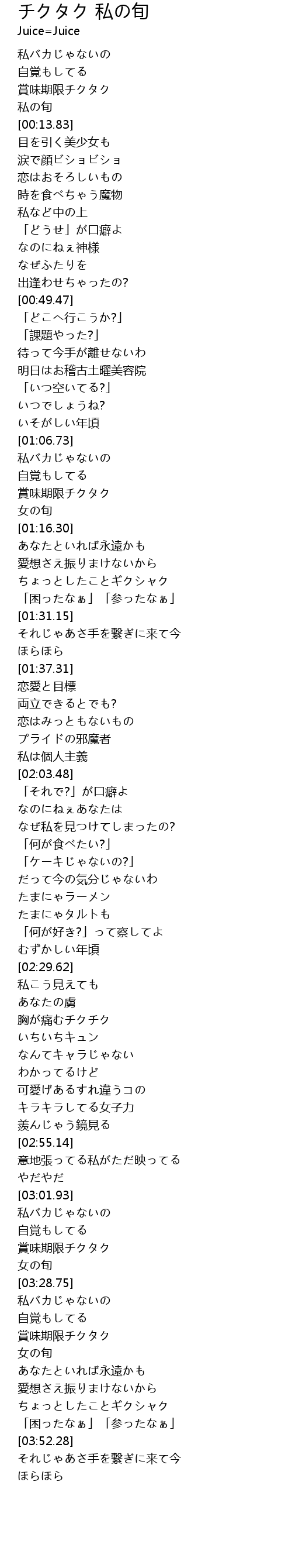 | [03:32.84] | 賞味期限チクタク |