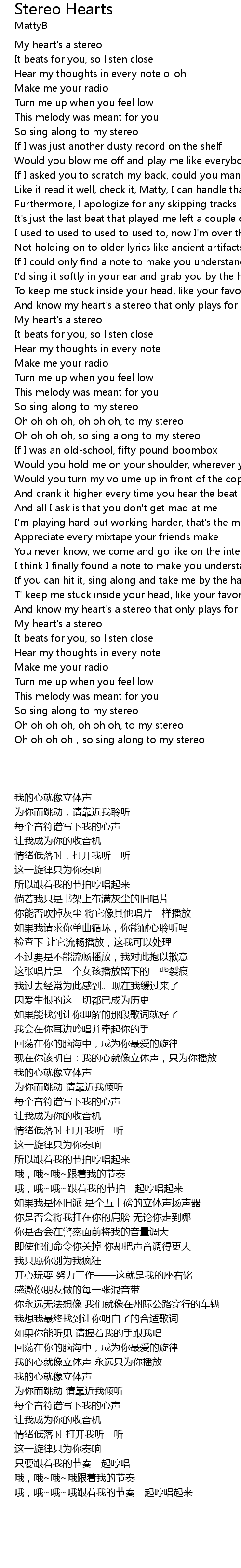 | [00:00.39] | My heart' s a stereo |