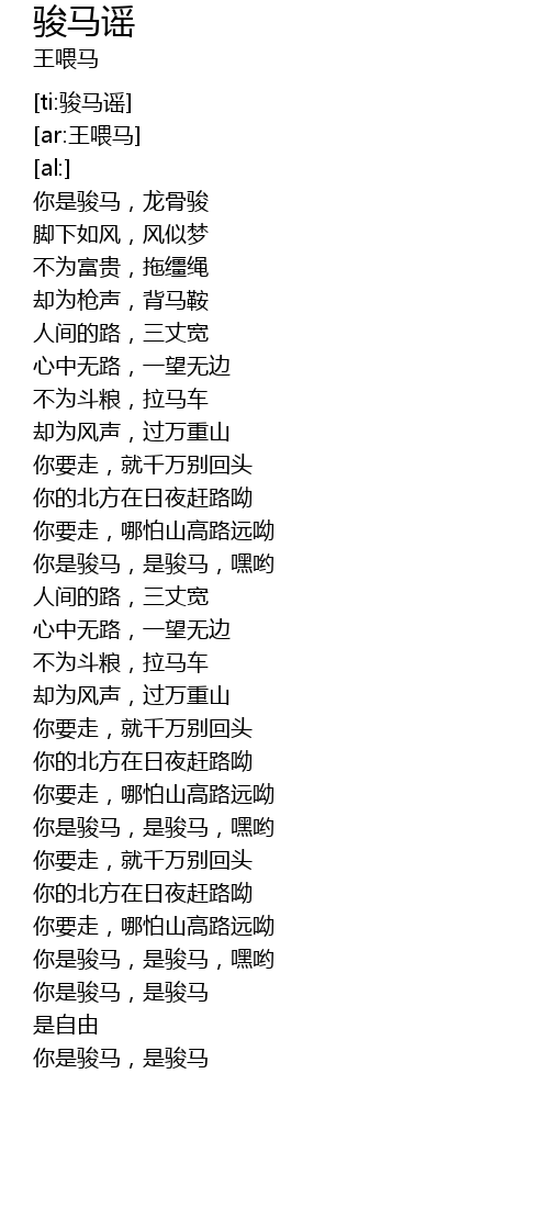 | [00:34.32] | 你是骏马,龙骨骏 |
