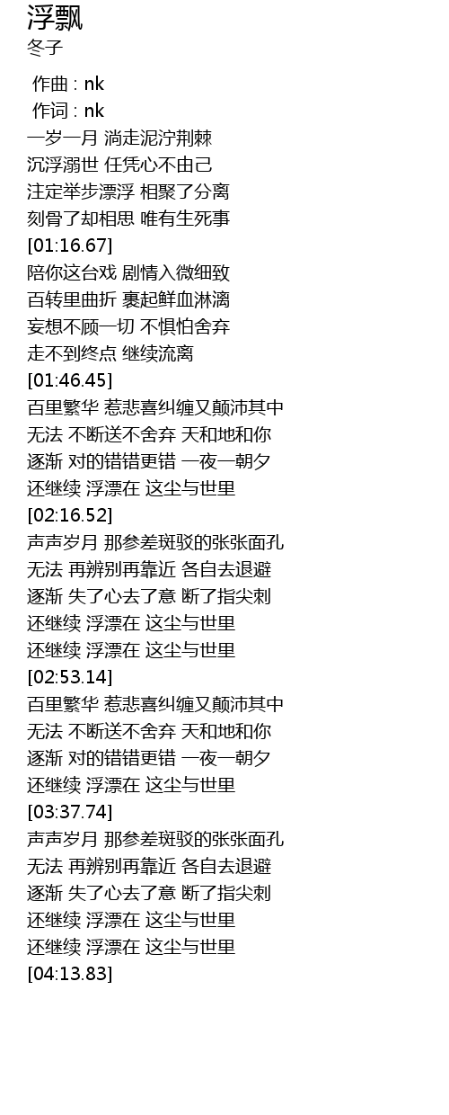 | [03:59.69] | 还继续 浮漂在 这尘与世里 |