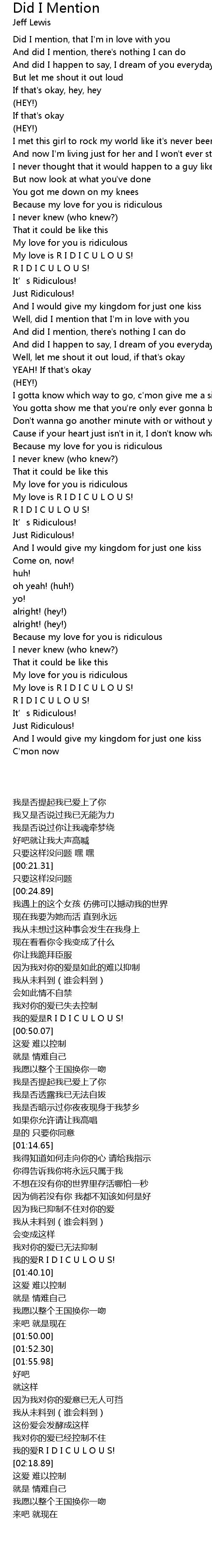 | [00:58.43] | Well, did I mention that I'm in love with you |