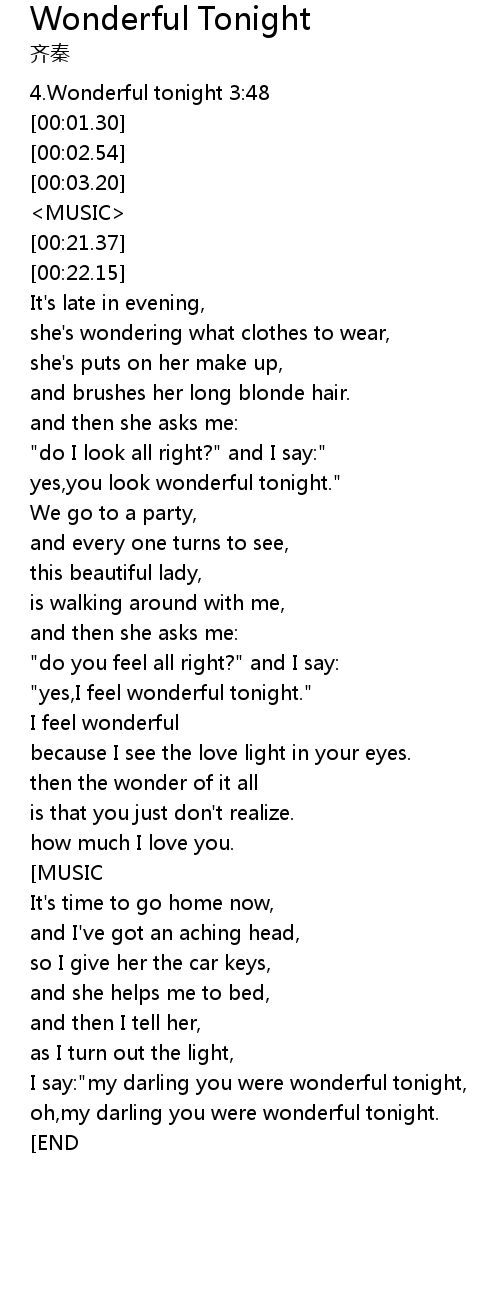 | [00:52.77] | yes,you look wonderful tonight." |