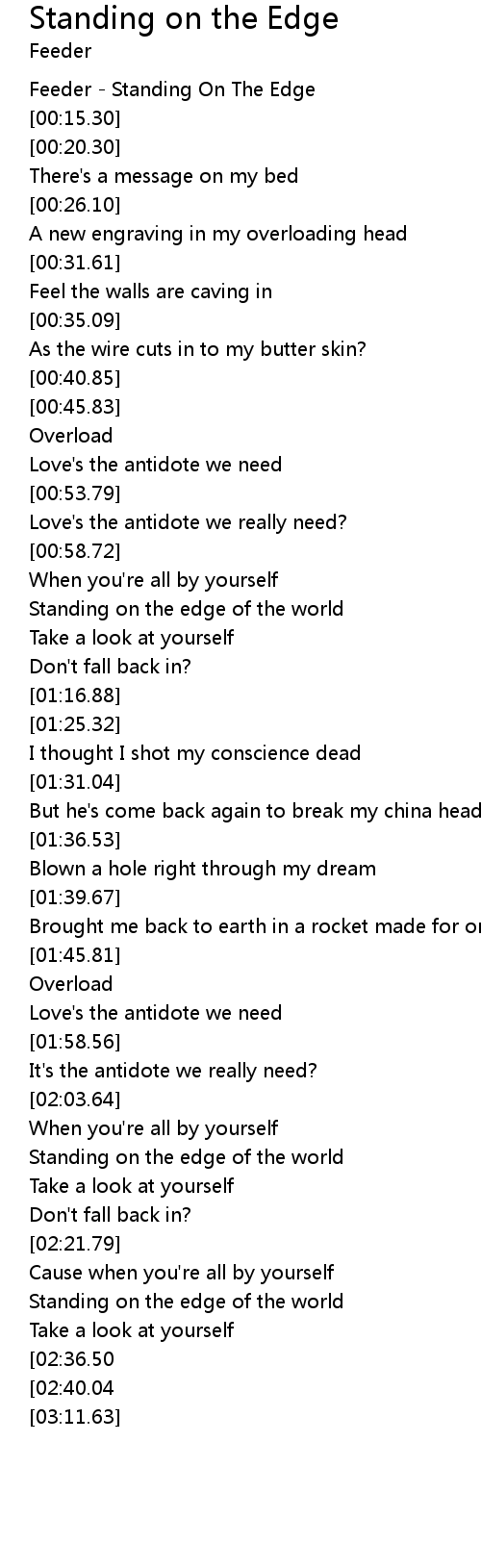 | [00:37.10] | As the wire cuts in to my butter skin? |