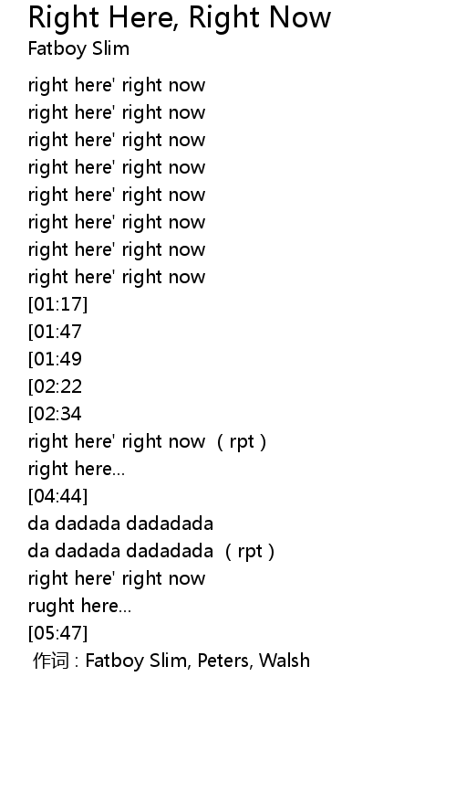 | [01:05] | right here' right now |