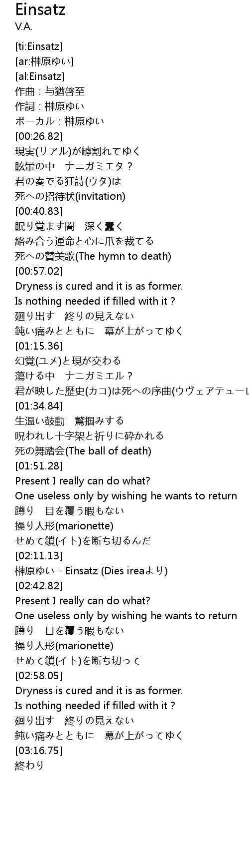 | [00:53.50] | 死への賛美歌(The hymn to death) |