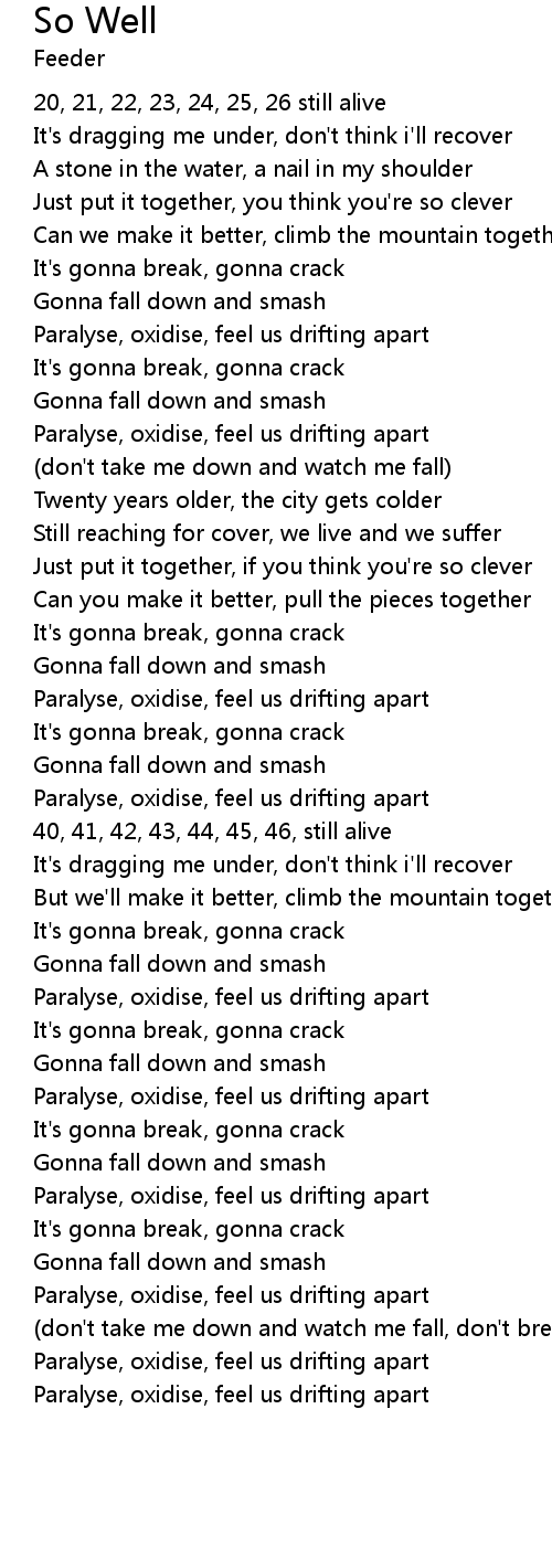 Paralyse, oxidise, feel us drifting apart |