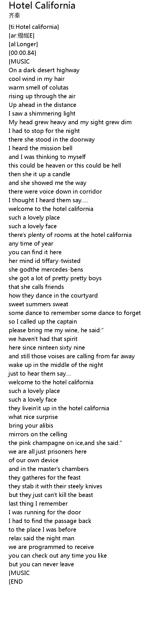 | [ti:Hotel california] | |