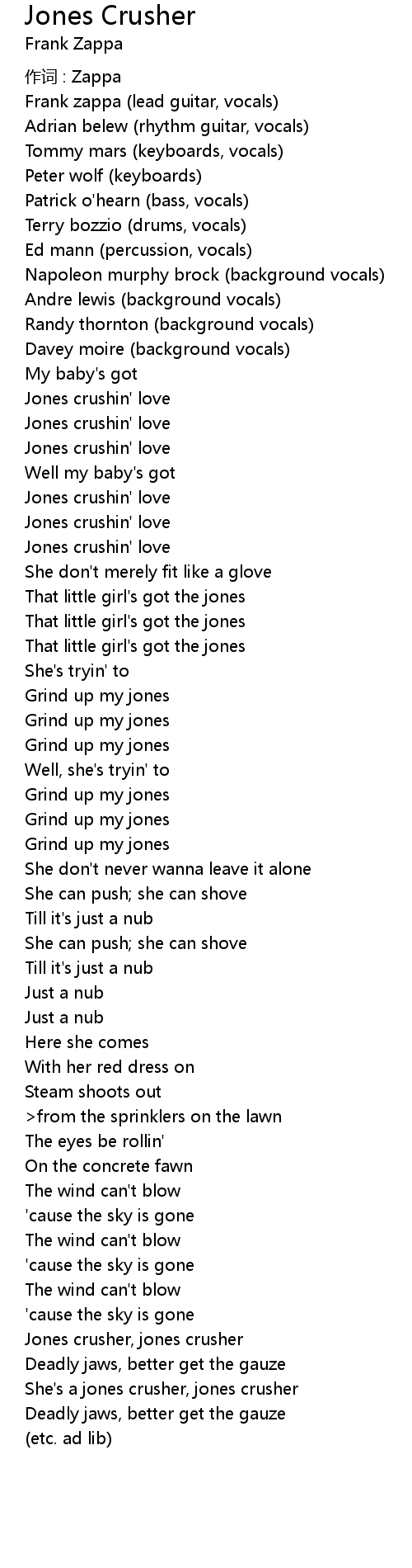 | Song | Jones Crusher |