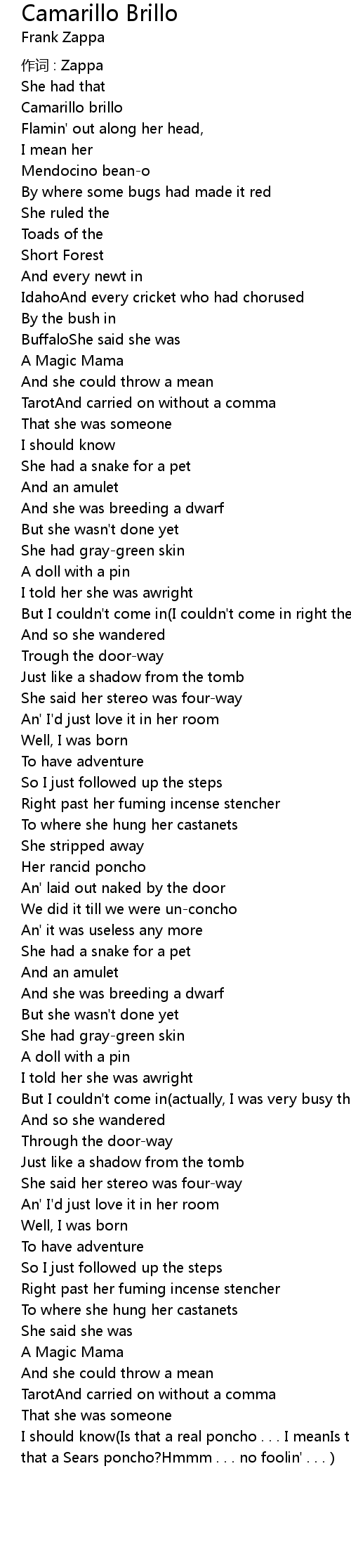 | 作词 : Zappa | |