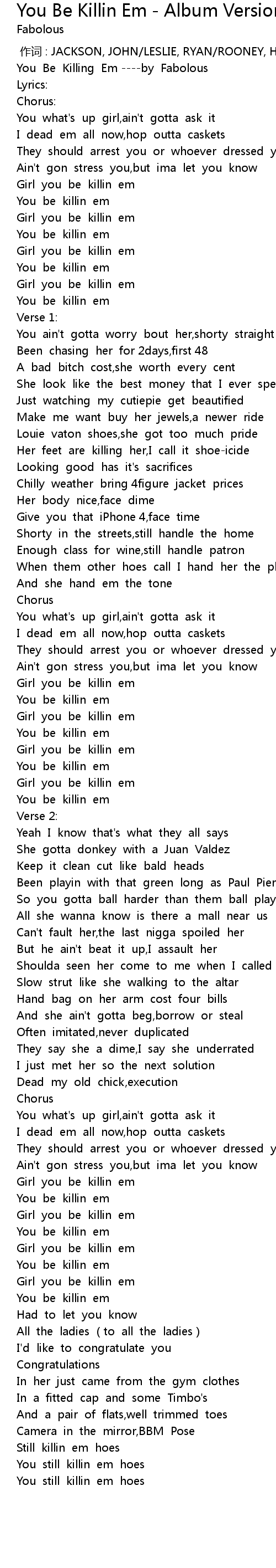 | [00:00.780] | You Be Killing Em ----by Fabolous |