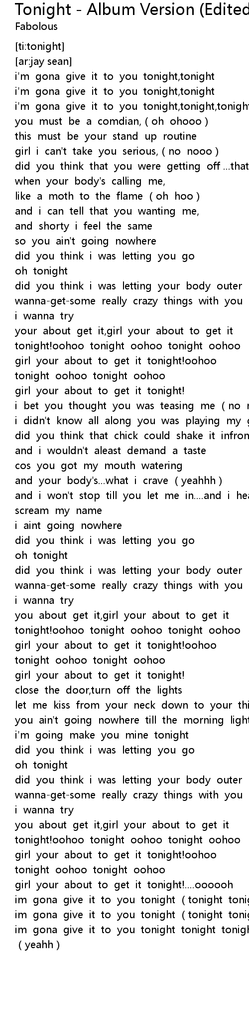 | [02:53.783] | im gona give it to you tonight tonight tonight tonight yeahh |